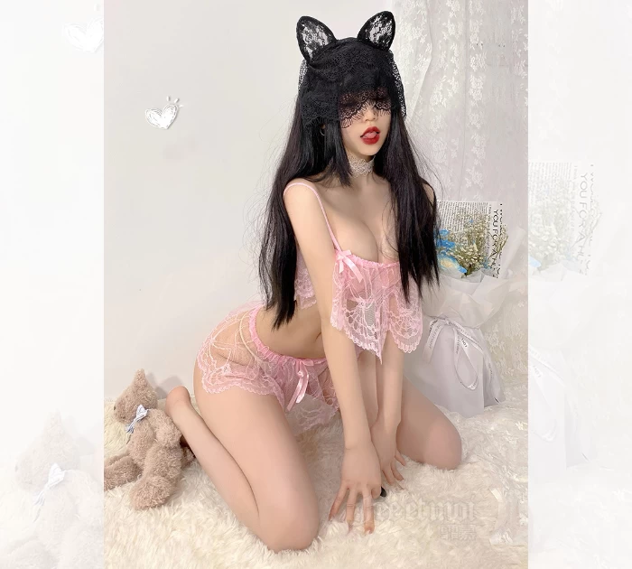 Màu hồng dịu dàng tôn lên vẻ nữ tính, biến bạn thành bông hồng anh đào mà ai cũng muốn ngắm nhìn nhưng chỉ một người được chạm vào. Chất liệu ren này giống như đôi bàn tay vô hình khéo léo vuốt ve làn da bạn. Từng sợi vải mảnh mai tạo thành mạng lưới tinh xảo, để hơi thở phập phồng trên ngực lộ ra qua những khoảng trống nhỏ.